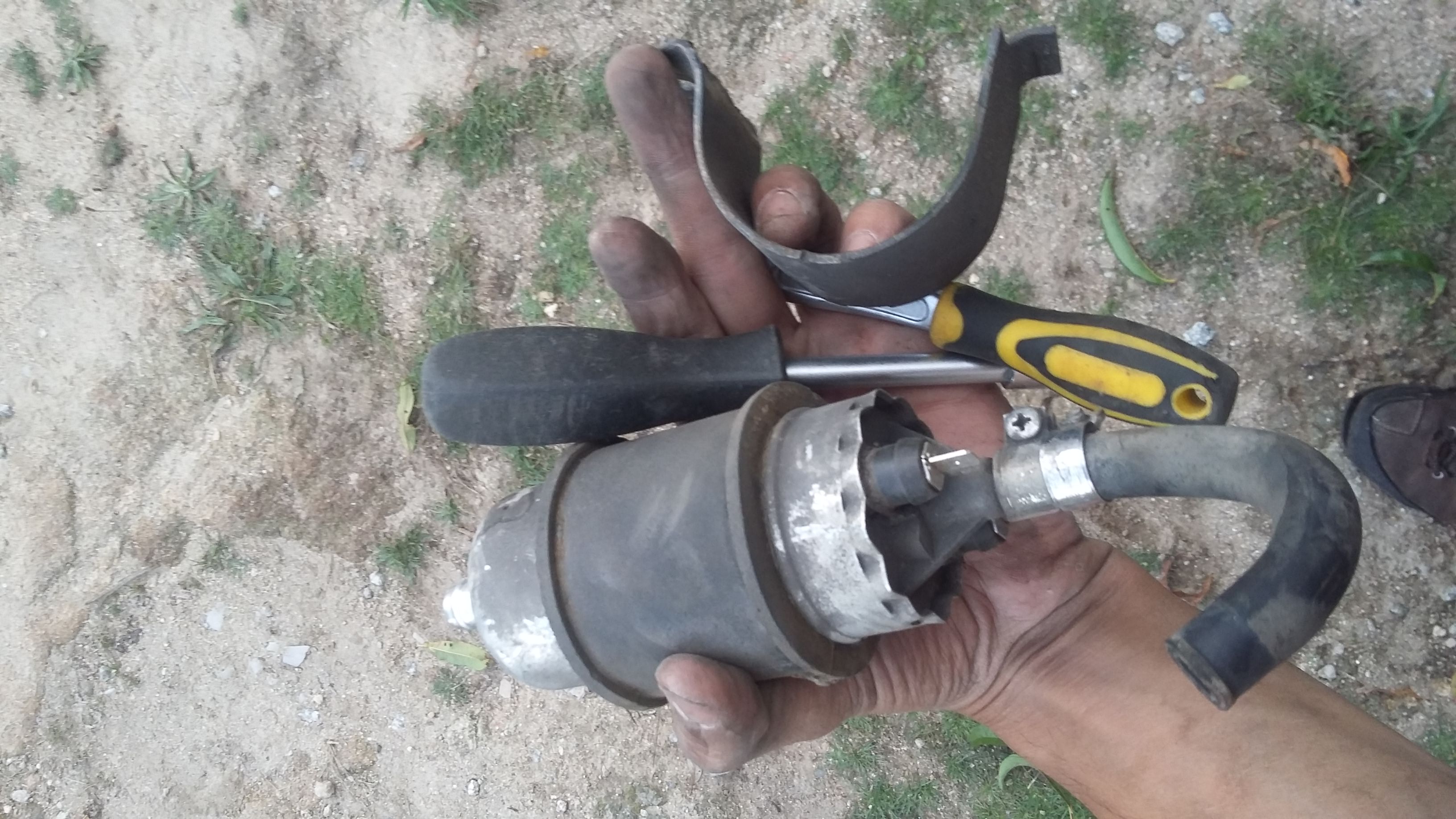 Llego el momento de meterse bajo el donante y extraerle la bomba de gasolina. Sitio malo de trabajar, espacio reducido y firme irregular asi que toco sufrir. Menos mal que pertenezco a la categoria de pesos pluma y pude culebrear ahi abajo.