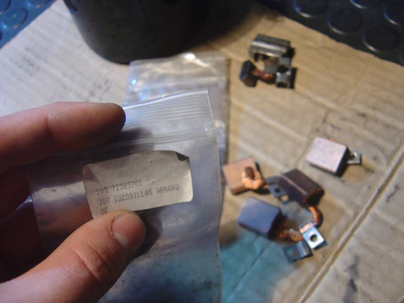 Al final después de ver en internet unos kits de escobillas para este arranque por 19 euros, que supongo traían tanto escobillas como portaescobillas, he optado por pasarme por la tienda local y comprar un juego de escobillas universales porque total me iba a tocar soldar mallas sí o sí en cualquiera de ambos casos. La anécdota, por variar, es que al llegar a junto de Pascual en el mostrador, siempre acaba diciendo algo así como "ufff, escobillas, de esto ya no se vende... es una referencia antigua... tengo motores de arranque enteros" :caguen: :caguen: en este país ya no se arregla nada desde hace años, sólo se cambian piezas a bulto y talonario :caguen:. Tanto es así que donde he comprado estas escobillas me he llevado yo los dos últimos juegos que había en la estantería :roll: :
