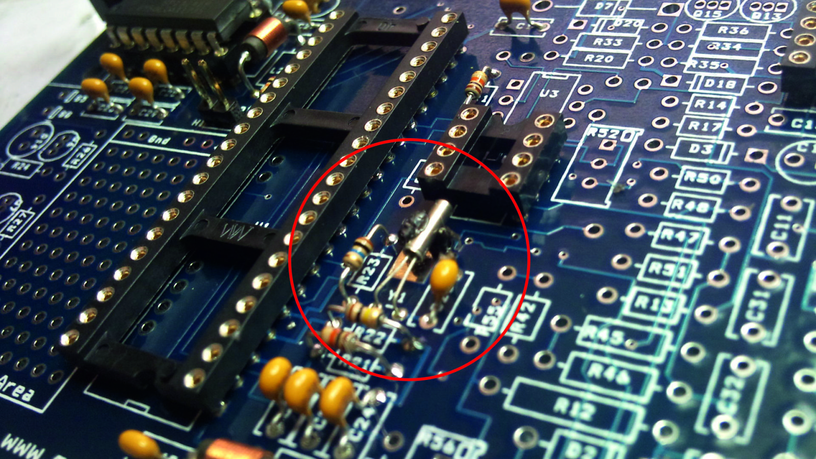 72 - Montamos D5 y D7 diodos cerca de los ultimos transistores. Ojito con la polaridad. Estos diodos ademas hay que montarlos separados de la placa unos milimetros