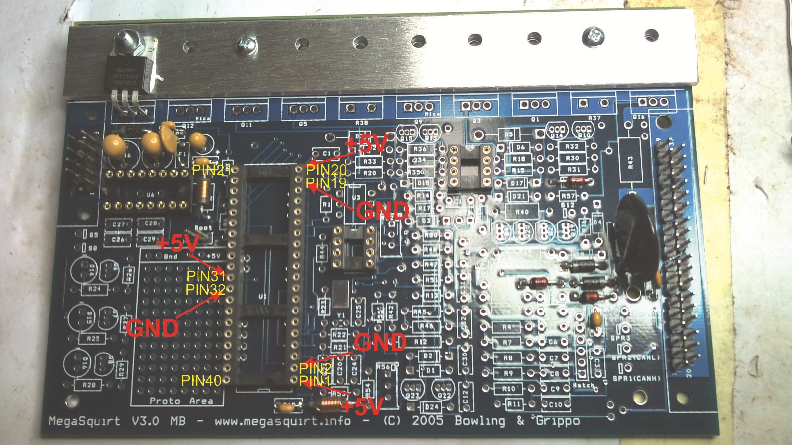 primero coloco unos puentes hacia la protoarea para conseguir la señal desde