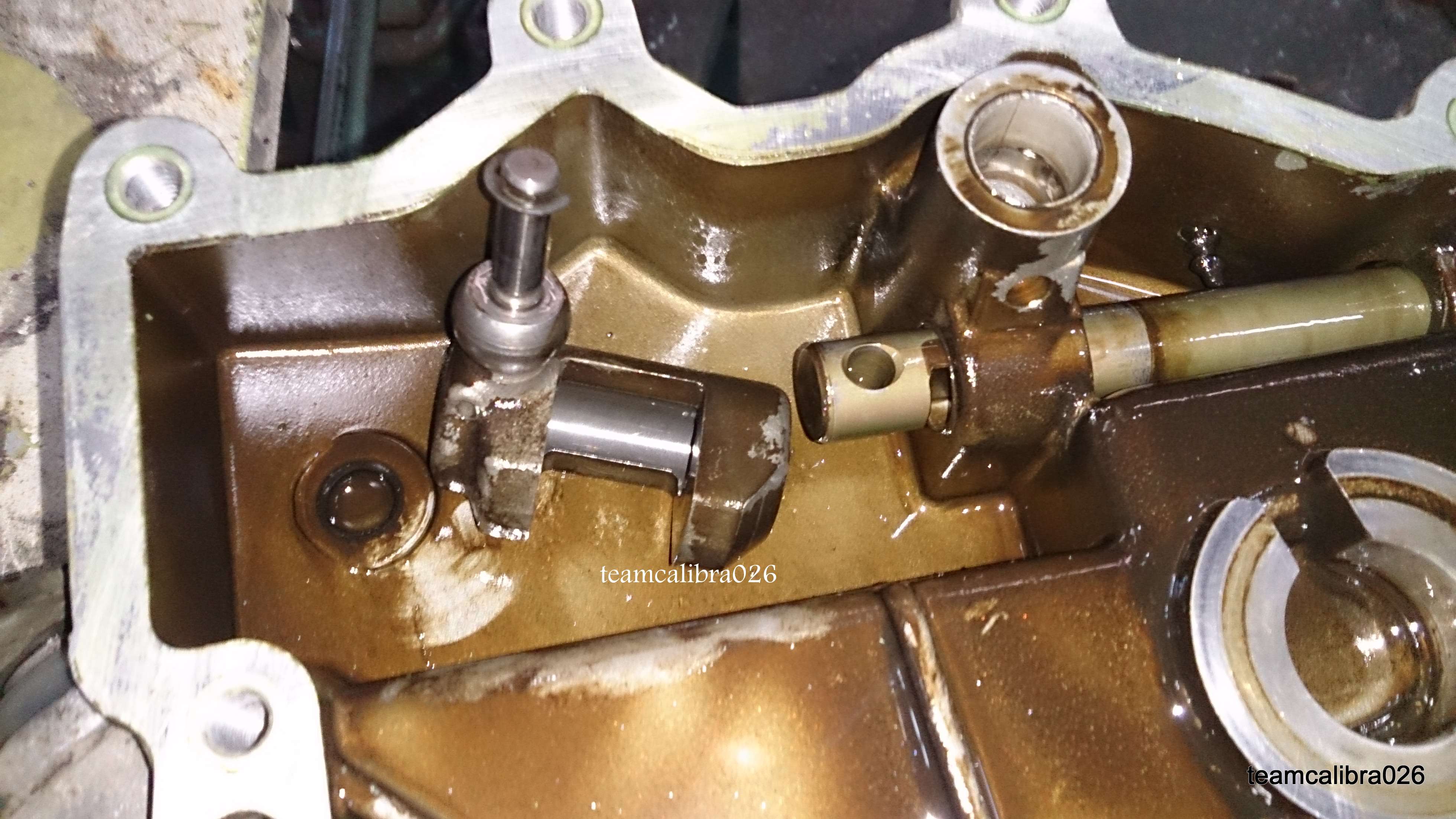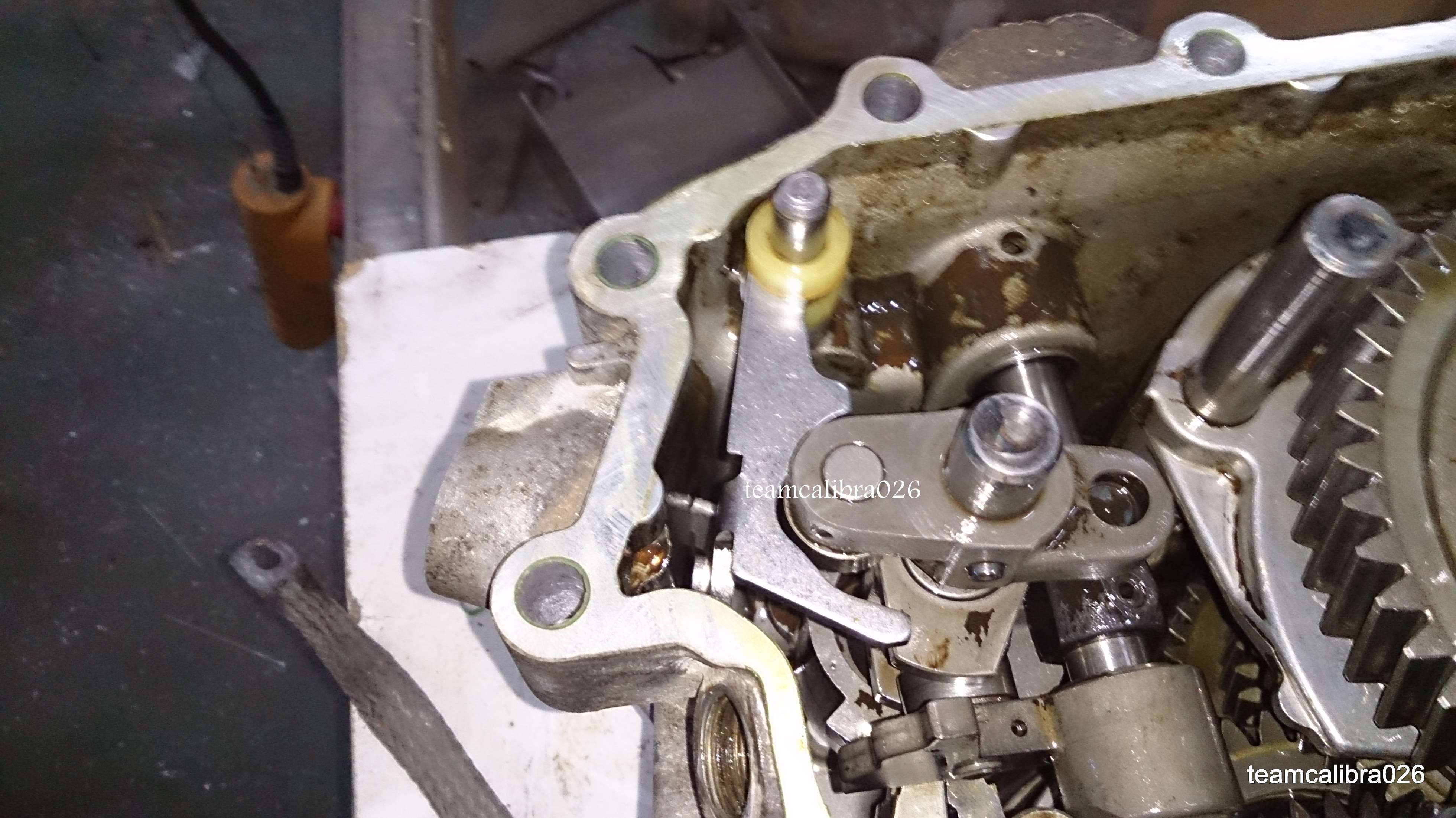 Ojo porque a mi me vino pegada en la tapa y hay que volver a colocarlo en el cambio con sus dos arandelas de teflon,una por arriba y otra por abajo.Y tiene que abrazar ese rodamiento. El tornillo que sacamos al principio con un muelle, lo que hace es empujar este balancin, pero si dejamos el muelle puesto, nos descentrará ese eje y sera complicado volver a montar la tapa.
