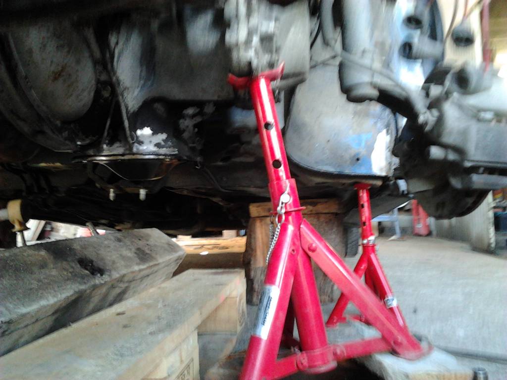 Con borriquetas no te da, hay que ingeniarselas para ir subiendo mas la carroceria. Incluso habria que subir primero el coche a unas tablas o algo asi en las ruedas traseras para ganar altura de atras, de otra forma al levantar mucho el morro, acabaria tocando el culo contra el suelo y como tengas montado el escape o la defensa... djudju.