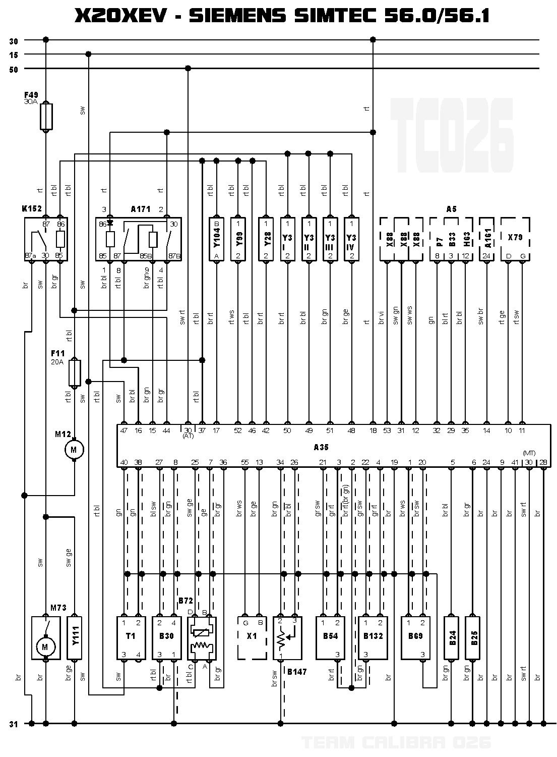 El rele en cuestion es el K152 y sus dos conexiones de maniobra (su bobina) van directas a ECU, a los pins 37 y 44. La potencia esta protegida por el fusible F49, de 30A (como es tocho sera facil de localizar en la caja del vano motor).