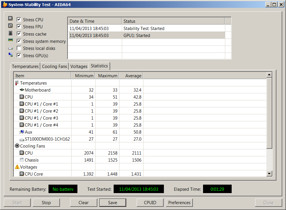 Está todo bien. Todo conectado en su sitio, incluso medí voltajes de CPU y está todo OK.
